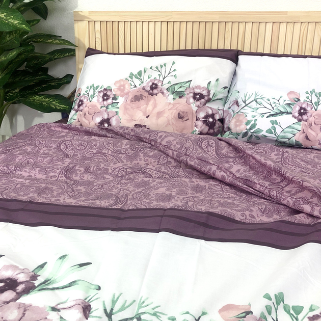 Постільна білизна Woodbury's бязь Пакистан євро комплект W2035 200x220 Фіолетовий з білим