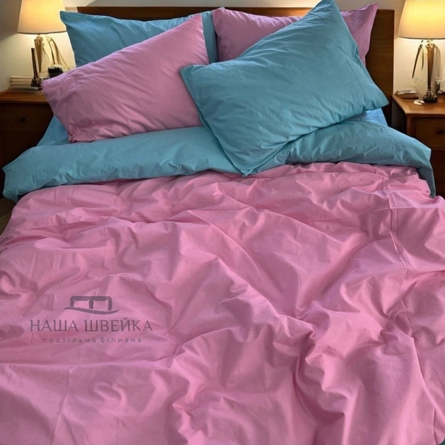 Комплект постільної білизни Наша Швейка Бязь Рожевий та бірюзовий однотонний Полуторний 150х215 см