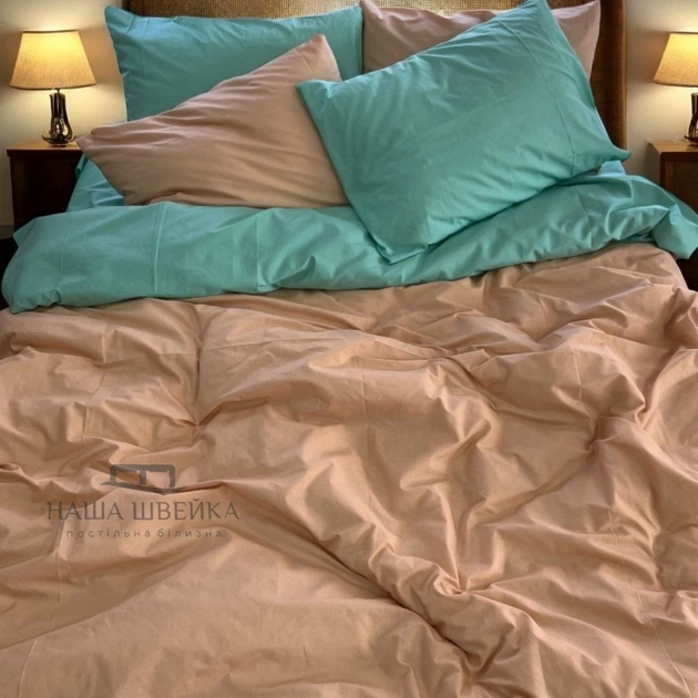 Комплект постільної білизни Наша Швейка Бязь М'ятний та піщаний однотонний Полуторний 150х215 см