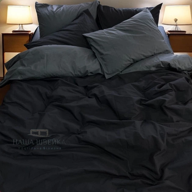 Комплект постільної білизни Наша Швейка Бязь Чорний і сірий однотонний Полуторний 150х215 см