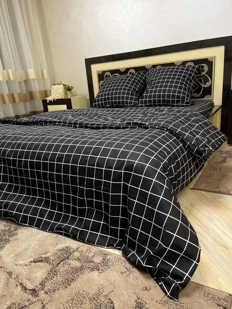 Постільна білизна бязь Полуторний Чорна клітинка Підковдра 150*220
