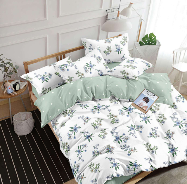 Комплект постільної білизни Sweet-Dream Листя 200 х 215 см євро смарагдовий