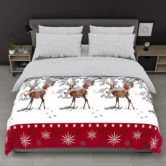 Комплект постільної білизни Sweet-Dream Новорічний Олені Санти 180 х 215 см двоспальний сірий