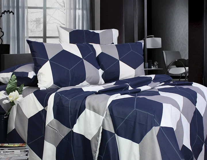 Євро постільний комплект З0056 Єней-Плюс, колір: синій, сірий, білий