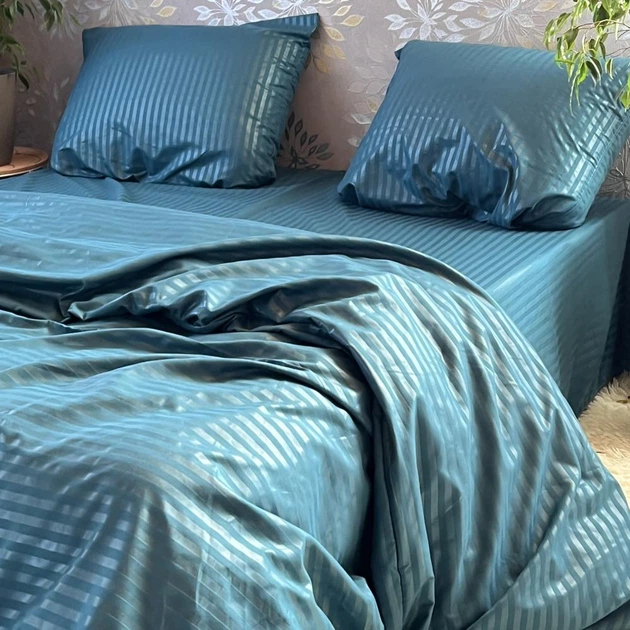 Постільна білизна бавовняна Смужка Півтораспальна 150 х 215 Страйп сатин мікрофібра 70 x 70 Смарагд