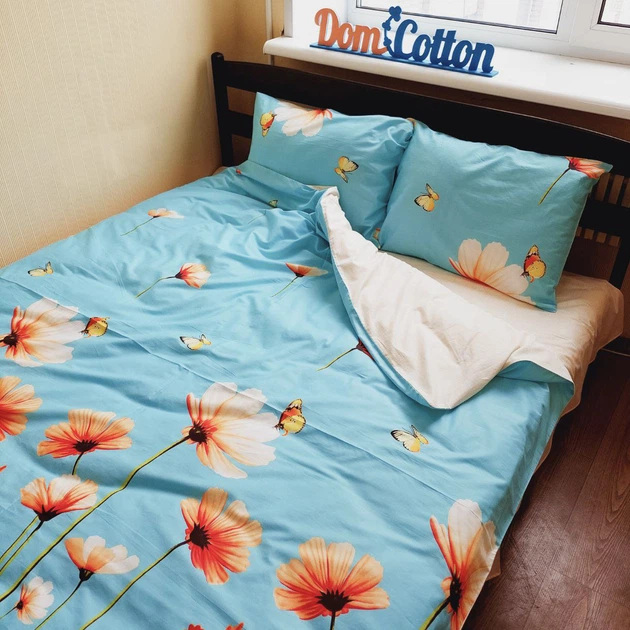 Комплект постільної білизни Dom Cotton сатин "Квітковий ранок" Полуторний