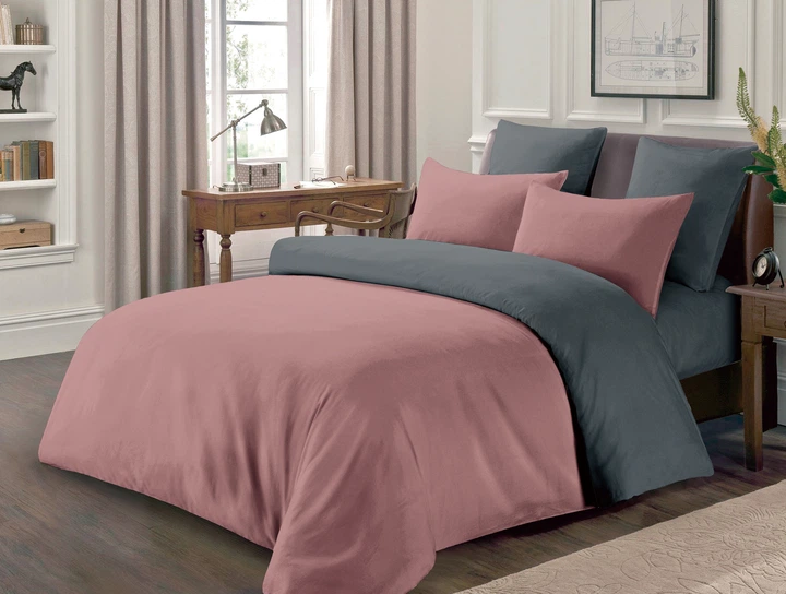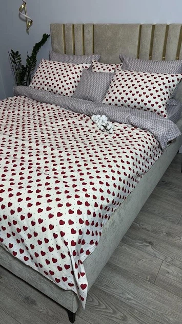 Постільна білизна рожево-сіра 41/73 Love You Полісатин Євро