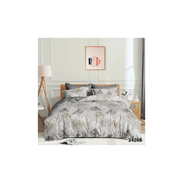Фабрична бавовняна постільна білизна класу-А Полуторний 145 х 210 наволочка 70х70 2шт Сірий з білим (24585209)