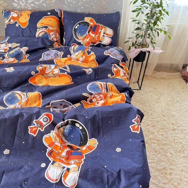 Постільна білизна бавовняна Космонавт Півтораспальна 150 x 220 Бязь Синій 50 х 70