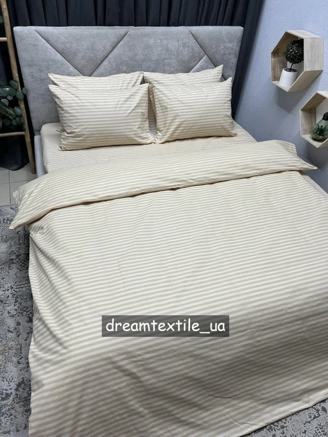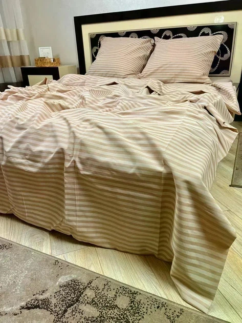 Постільна білизна бавовняна Смужка Півтораспальна 150 x 220 Бязь Капучіно 70 х 70
