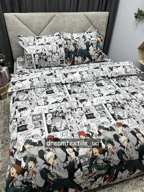 Постільна білизна бавовняна Аніме 7821AW Півтораспальна 150 x 220 Бязь Біла 50 х 70
