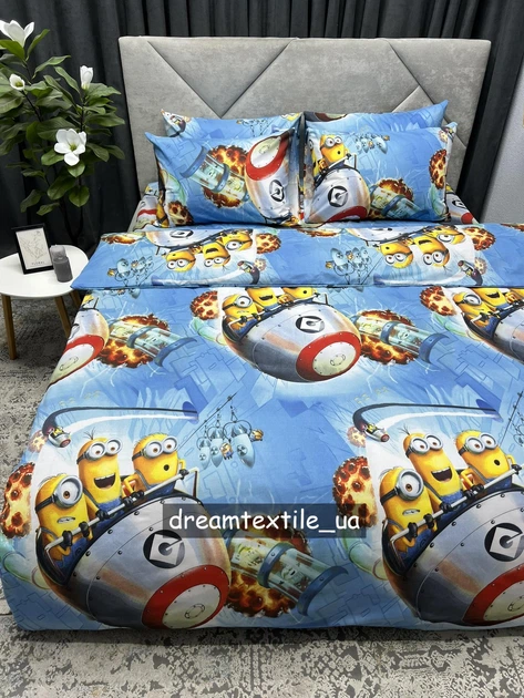 Постільна білизна бавовняна Міньйони Півтораспальна 150 x 220 Бязь Блакитна 50 х 70