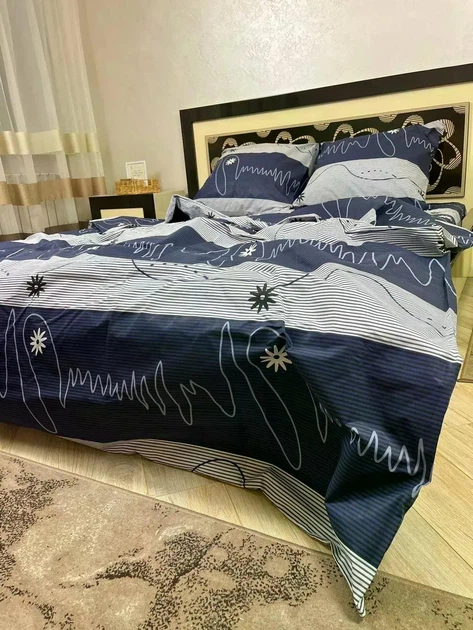 Постільна білизна бавовняна Візерунки Півтораспальна 150 x 220 Бязь Синій 50 х 70