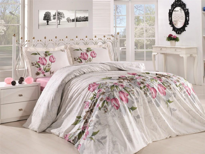 Комплект постільної білизни Sweet-Dream Квіти біло-рожеві 200 х 215 см євро різнокольоровий