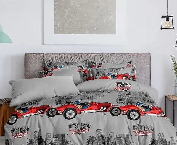 Комплект постільної білизни Sweet-Dream Машинки нові 200 х 215 см євро сірий