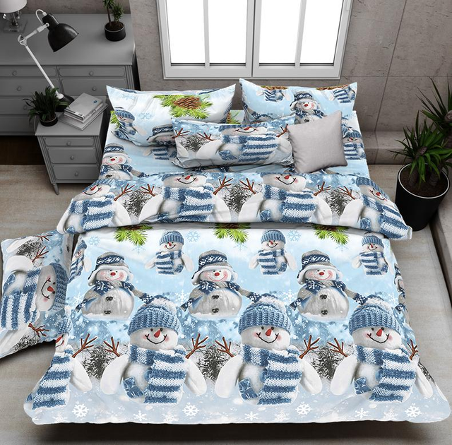 Комплект постільної білизни Sweet-Dream Новорічний Сніговички 180 х 215 см двоспальний синій