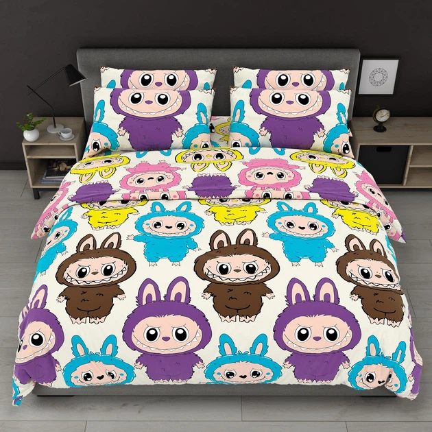 Комплект постільної білизни Королева Ночі Бязь 175х215 Двоспальний Різнокольорові лабубу 0485-2