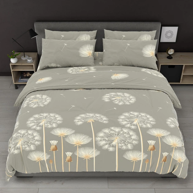 Комплект постільної білизни Королева Ночі Бязь 175х215 Двоспальний Кульбаби на сіро-бежевому 0501-2
