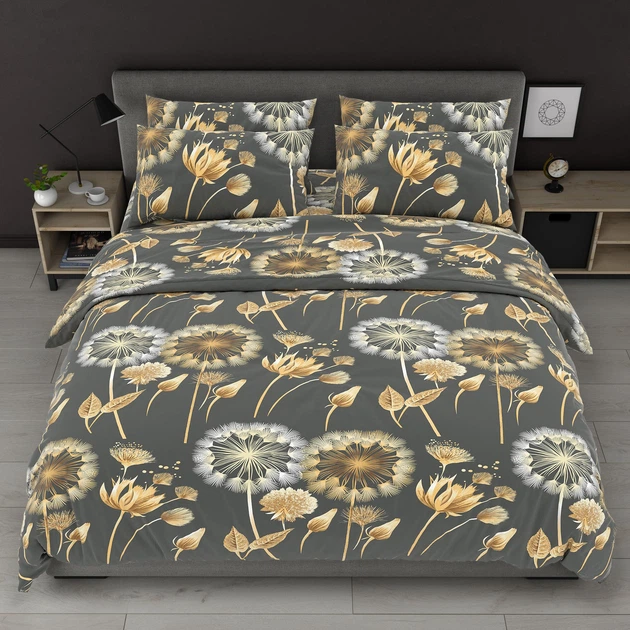 Комплект постільної білизни Королева Ночі Бязь 175х215 Двоспальний Кульбаби на сірому 0513-2