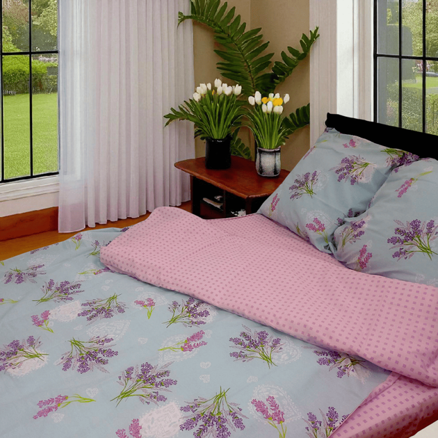 Комплект постільної білизни Букет Лаванді 200Х220 євро розмір бязь
