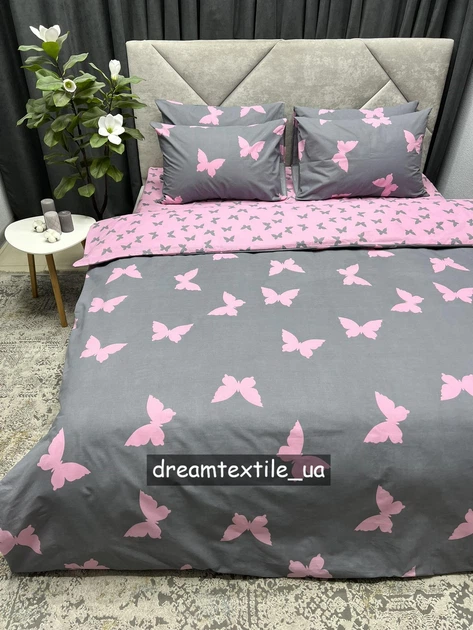 Постільна білизна бавовняна Метелик 702B Півтораспальна 150 x 220 Бязь Сіра 50 х 70