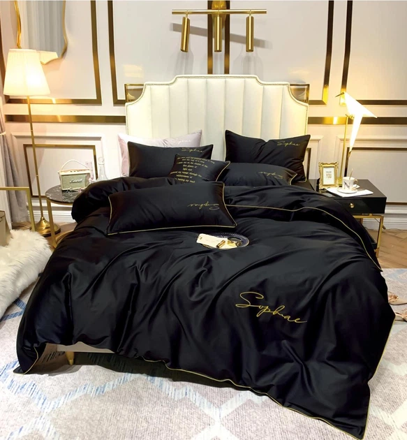 Полуторний комплект постільної білизни Crown 150*220 см сатин чорний p2696157827