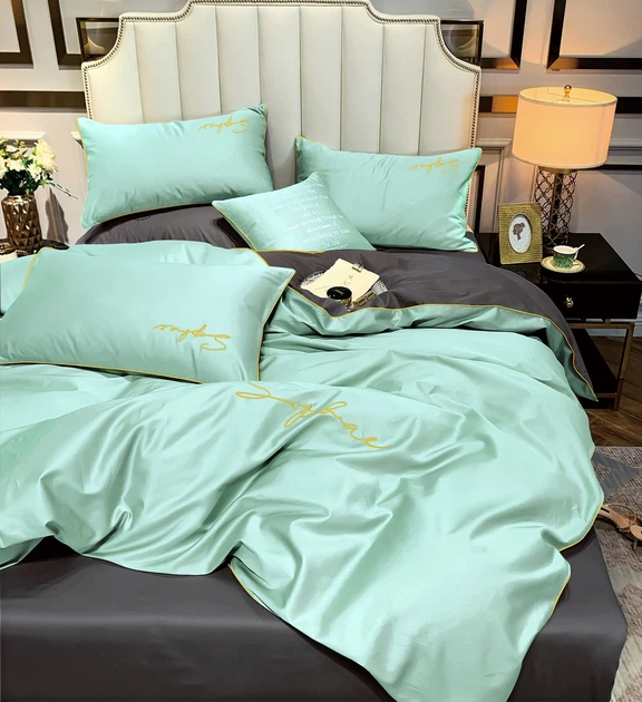 Полуторний комплект постільної білизни Crown 150*220 см сатин бірюзово-сірий p2197438943
