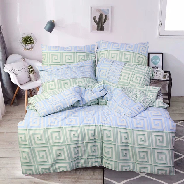 Подвійний постільний комплект Т0788 Еней-Плюс, колір: блакитний, зелений