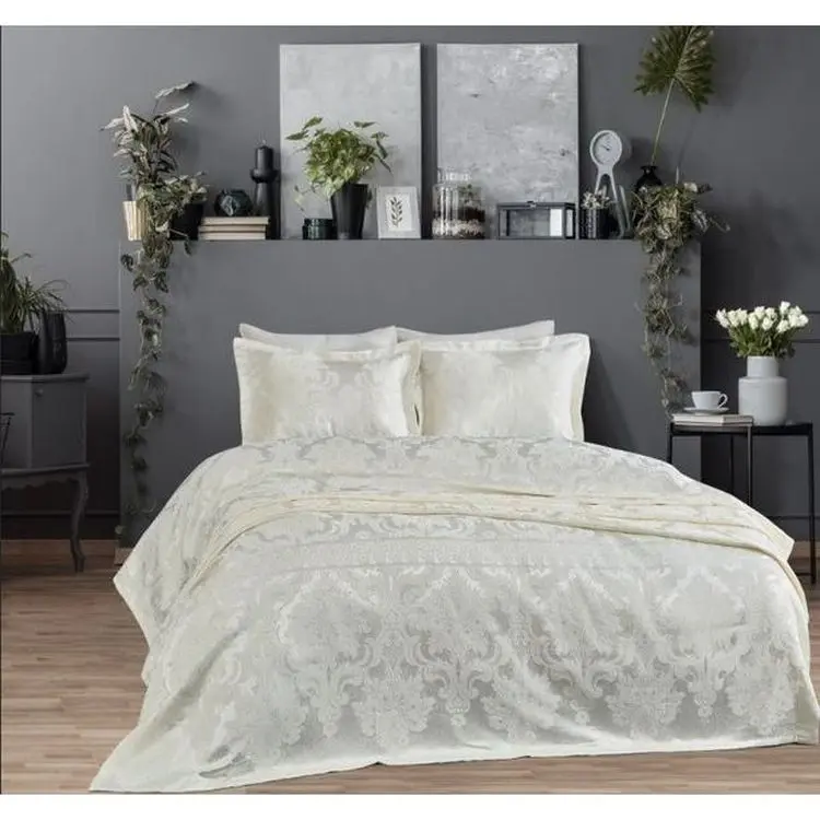 Покривало жакард з наволочками Dantela Vita Armada кремове євро (svt-2000022312523)
