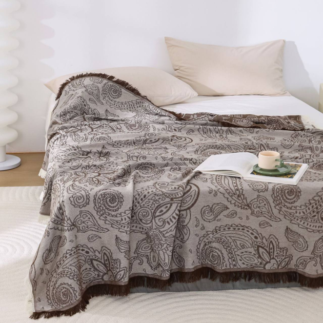 Мусліновий плед покривало Cappone Позитивна аура бавовна 4 шари 150200 см, коричневий