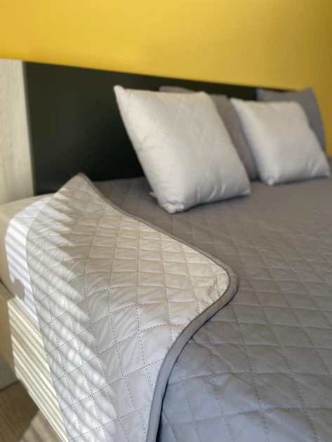 Полуторне покривало на ліжко двостороннє сірий /світло-сірий 152х210