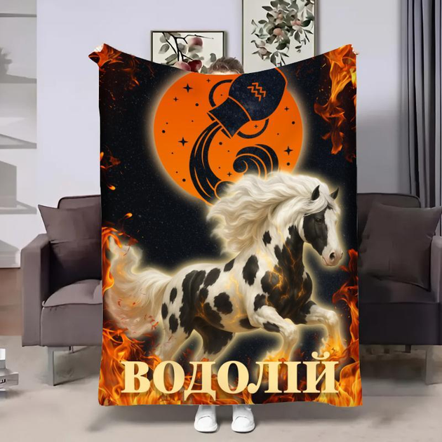 Плед Гороскоп 2026 — Водолій, плюшевий велюр, вогненний кінь, знак зодіаку Aquarius 80x100