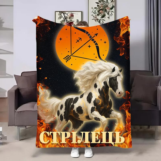 Плед Гороскоп 2026 — Стрілець, плюшевий велюр, вогненний кінь, знак зодіаку 80x100