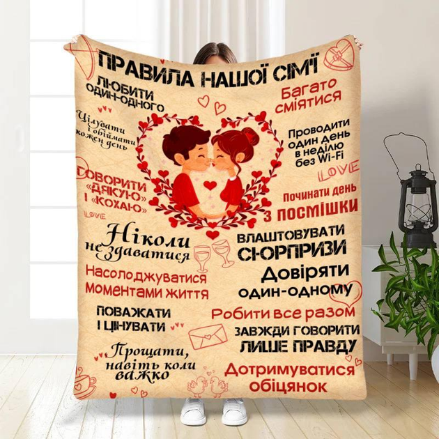 Плед 3D Привила нашої сім'ї з малюнком 80х100