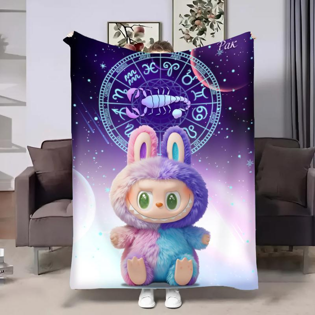 Плед Гороскопчик Лабубу — Рак (Labubu), плюшевий велюр, космос і знак зодіаку 80x100