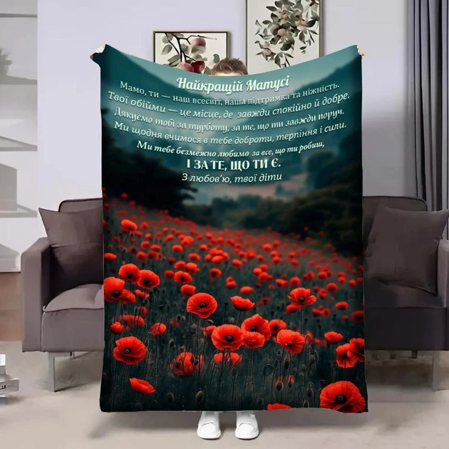 Плед плюшевий велюр «Мамі: Поле червоних маків» з 3D принтом 80100