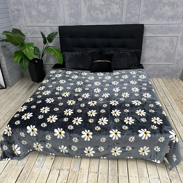 Плед покривало плюшеве Cappone з мікрофібри Ромашки білі 200х220 см