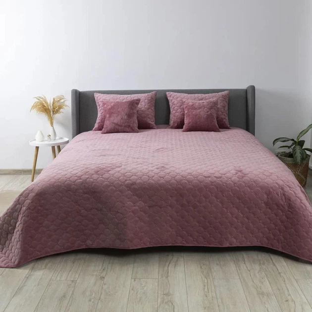 Велюрове двостороннє покривало ПЕТ Comfort Velour 150х210 см Пудра Ромб круглий