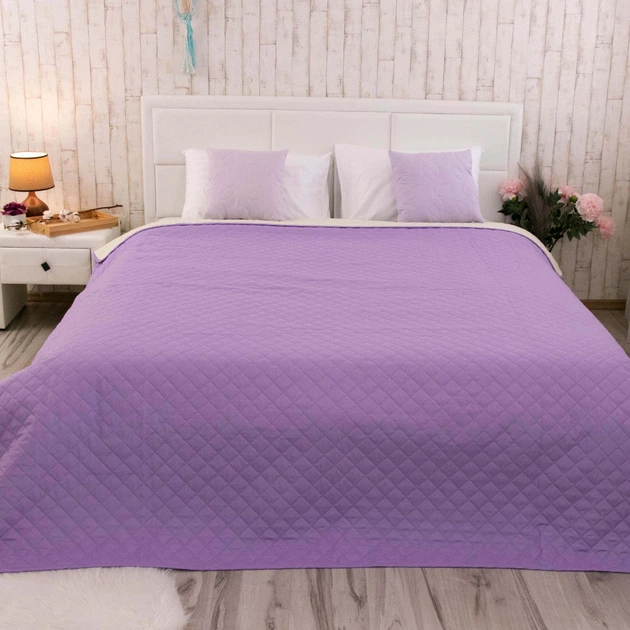 Покривало на ліжко двостороннє бузковий/молочний євро розмір 220х240