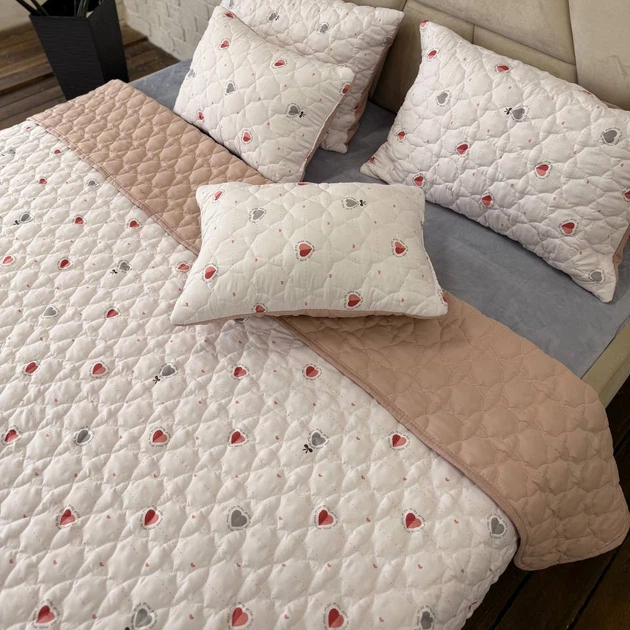 Покривало літнє стьобане Cappone Ніжність Сердець, 160х200 см + 2 подушки 40х60 см