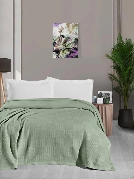 Покривало-піке вафельне Bysungur з бавовни 220х240 см Зелений