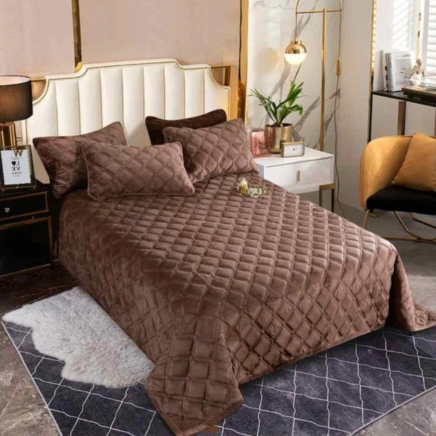Покривало велюрове стьобане Євро KOLOCO "Ромб" 220 х 240 см (39764) Коричневий