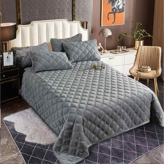 Покривало велюрове стьобане Євро KOLOCO "Ромб" 220 х 240 см (39762) Сірий