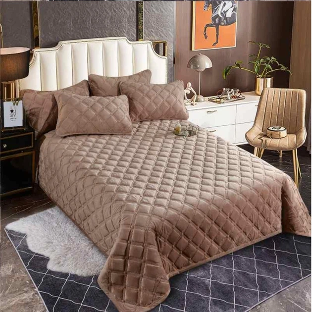 Покривало велюрове стьобане Євро KOLOCO "Ромб" 220 х 240 см (39765) Світло-коричневий