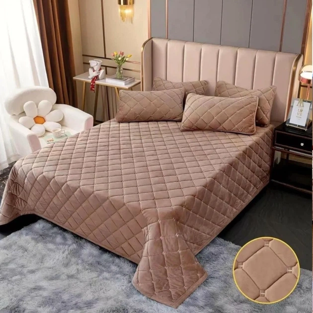 Покривало велюрове гіпоалергенне стьобане Євро KOLOCO "Ромби" 220 х 240 см (41870) Світло-коричневий
