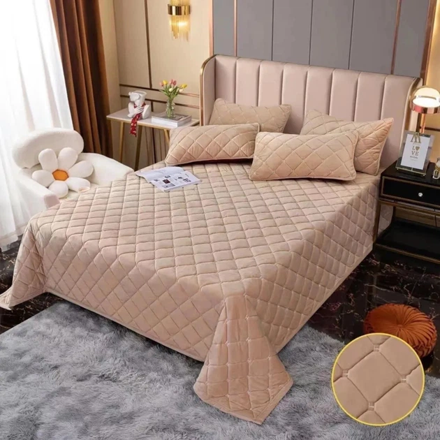 Покривало велюрове гіпоалергенне стьобане Євро KOLOCO "Ромби" 220 х 240 см (41871) Бежевий