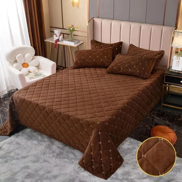 Покривало велюрове гіпоалергенне стьобане Євро KOLOCO "Ромби" 220 х 240 см (41874) Темно-коричневий
