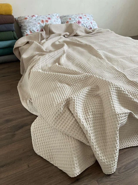 Покривало ZEINTEX Greece вафельне бавовняне бежевое 120х200 см