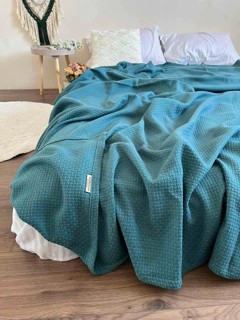 Покривало ZEINTEX Wheat бавовняне аквамаринове 120х200 см