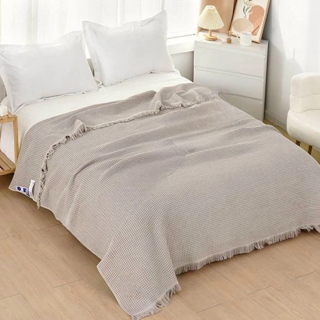 Покривало вафельне Євро KOLOCO 200 х 230 см (41877) Бежевий